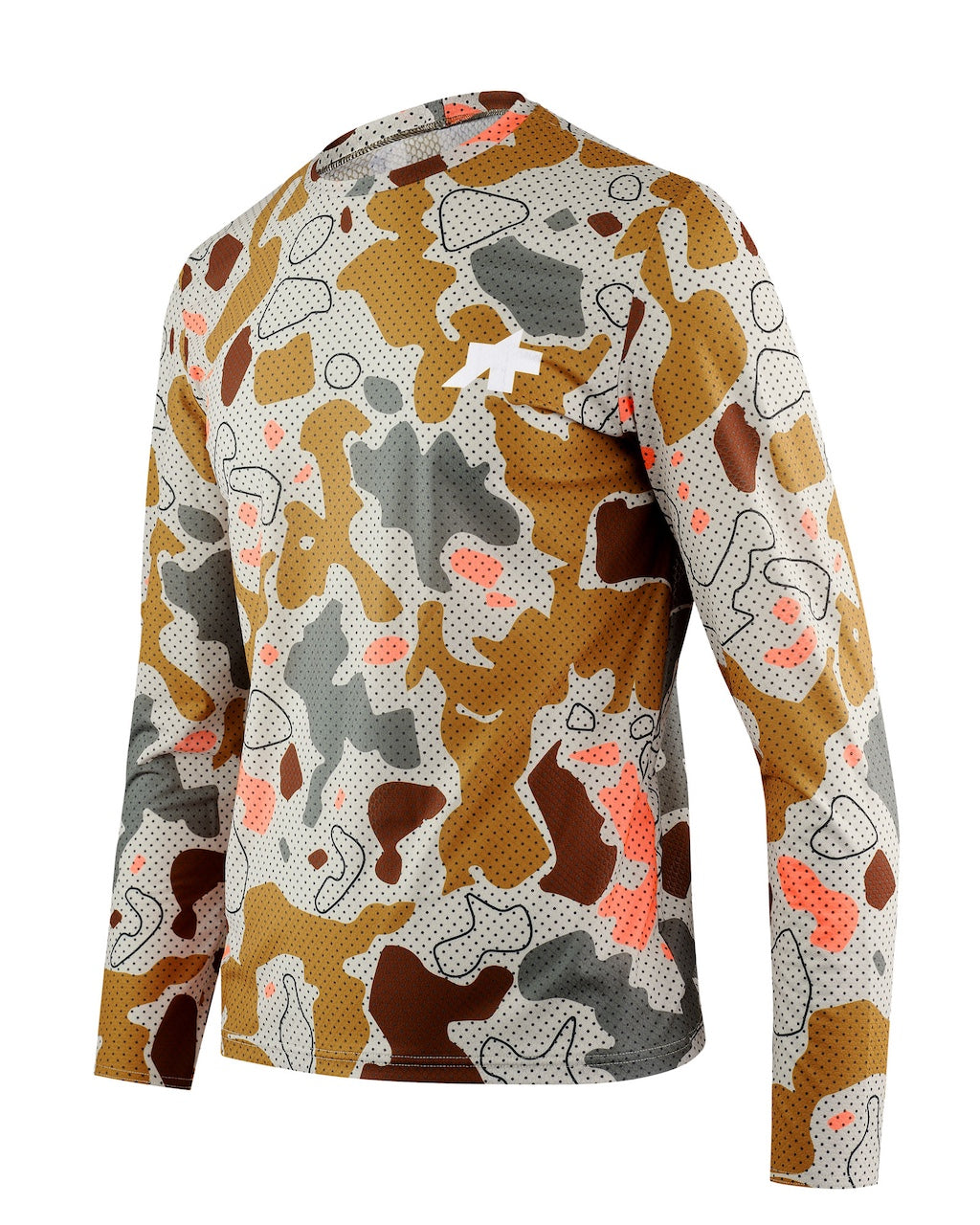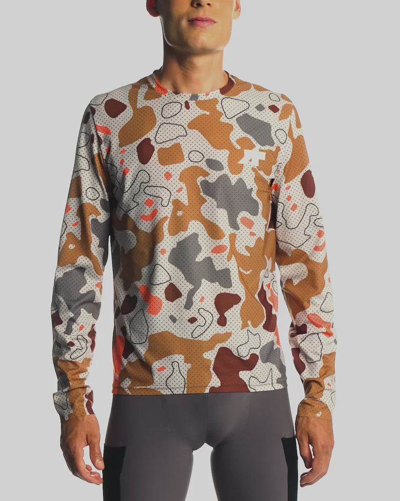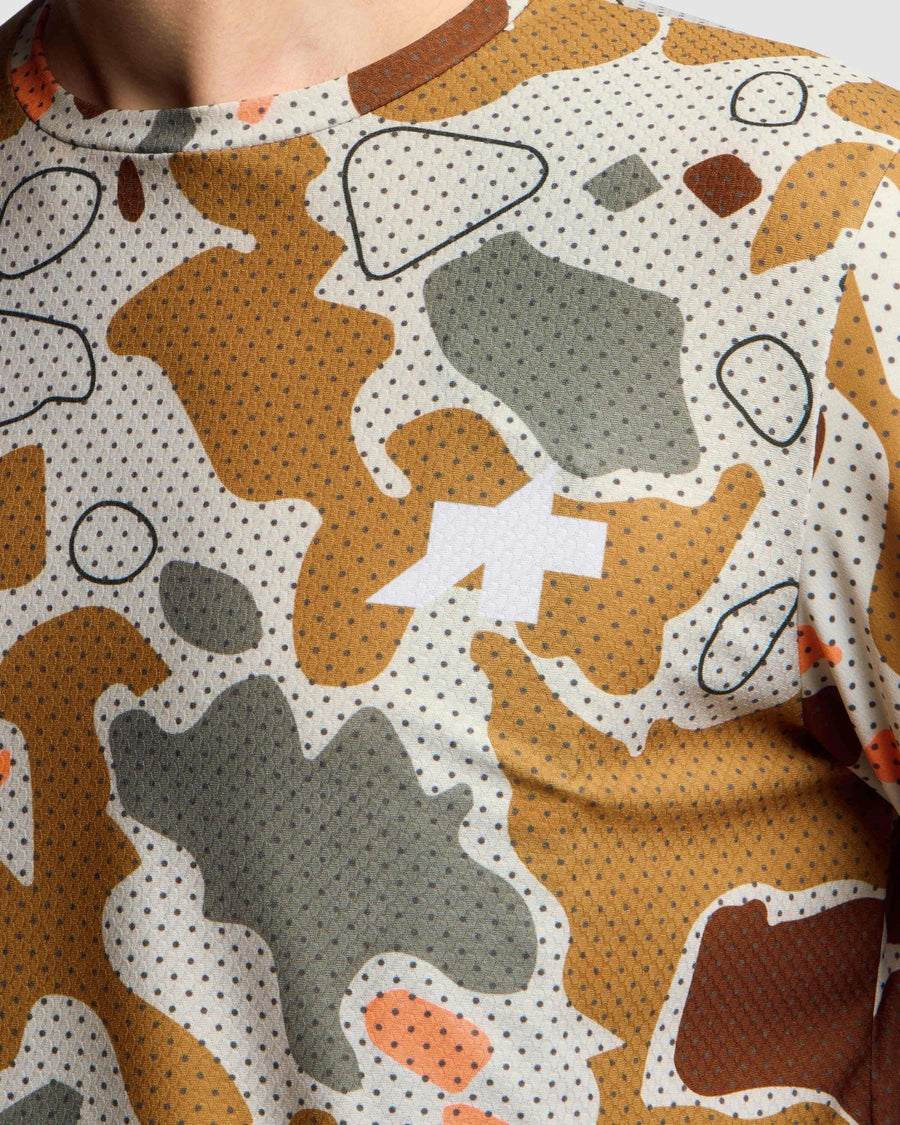 TACTICA LS T-SHIRTS T5 MUD-FLAGE は、主にオフロードライディングに向けて開発された、夏向けの長袖Tシャツです。製品名にある「MUD-FLAGE」とは、「泥」(Mud)と、「カモフラージュ」(Camouflage)を組み合わせた造語であり、主に茶色やグリーン、ベージュ系などのアースカラーを組み合わせ、泥の飛沫や汚れのようなパターンなどを描いたデザインのシリーズです。土の上でのサイクリングを好まれる貴方に是非!