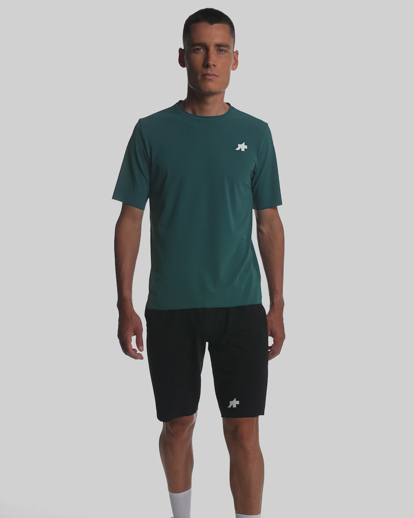 TACTICA POST RIDE T-SHIRTS T5 は、その名の通り、「ポスト ライド」( =ライドの後で)シーンに最適な、着心地抜群の半袖Tシャツです。アソスのテクニカル サイクルウェアに使用されている「SENS AIR」と呼ばれる、100%化繊のピケ素材を使用している為、優れた伸縮性と柔らかな肌触りに加えて、非常に高い通気性と速乾性を有しています。(※ SENS AIR 素材は、例を挙げると、ウィンドシェル類において、通気性を高める目的で側面部分などに使われています。)
