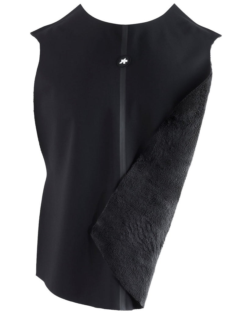 新聞紙を高機能なソフトシェル素材の布地に置き換えることで、しっかりとした防風・防水性能により冷たい風や雨をブロック。加えて、長い毛足が施されたフワフワな裏地により、確かな暖かさで冷気に晒される前面(胸部〜腹部にかけて)が覆われる。折り畳むとジャージのポケットに収納可能。そしてなにより、繰り返し使える。そんなアイテムです。スイス アルプスの懐に本拠を置くアソスならではの製品と言ってもいいでしょう。